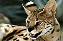 Le serval est un félin de 85 cm de long vivant dans les savanes humides. il se nourrit de rongeurs, de petites antilopes et d'oiseaux. Il est parfois la proie des léopards mais est surtout chassé par l'homme pour sa fourrure.